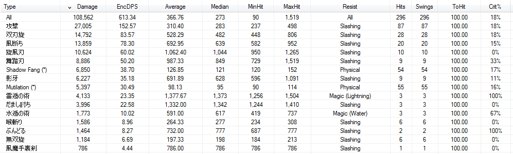 活殺自在を発動してから15秒間、水遁を発動してから15秒間など、有効時間内にインスタントスキルを挟み込むことにより、よりテクニカルに、より高DPSな忍者へと昇華させていきましょう。